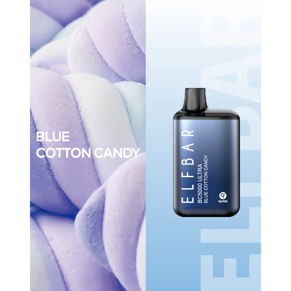• Электронная сигарета Эльф Бар 5000 затяжек Черничная Сахарная Вата (Elf Bar BC5000 Blue Cotton Candy)